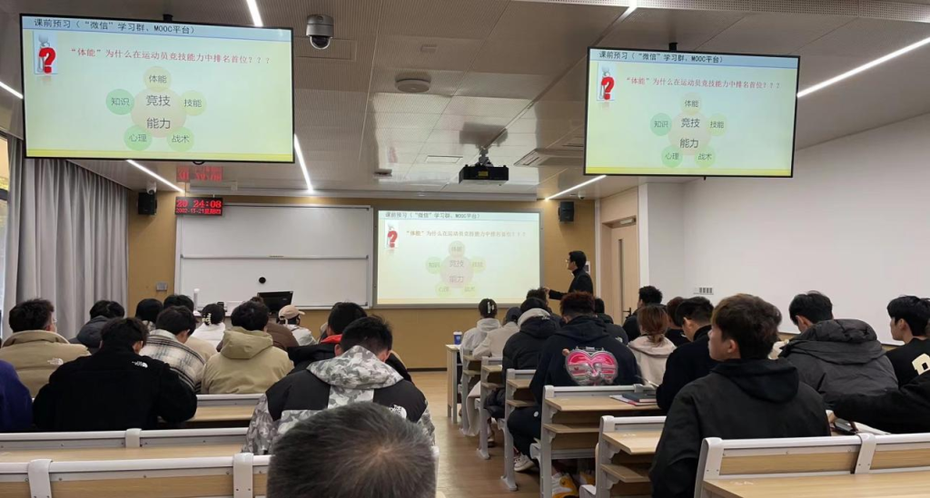 本科教学督导组组长、青年教师参加。周喆啸老师面向2021级运动训练专业学生讲授了《运动训练学》课程。